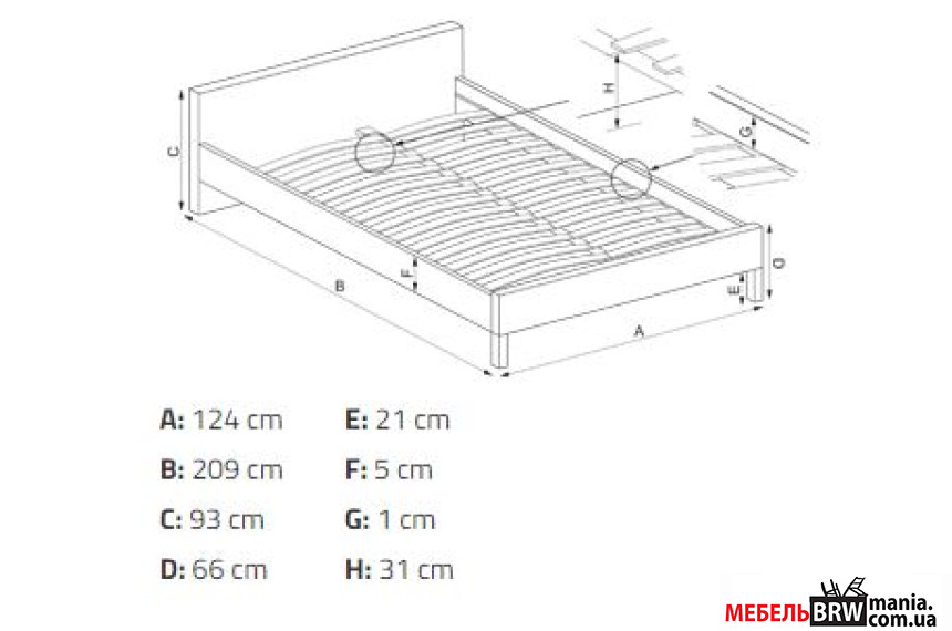 - Висота узголів'я 93 см