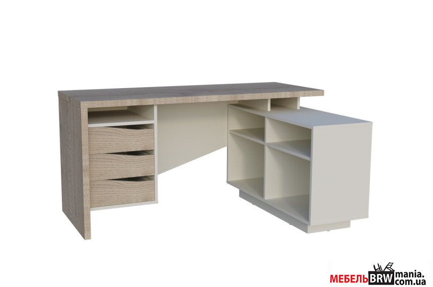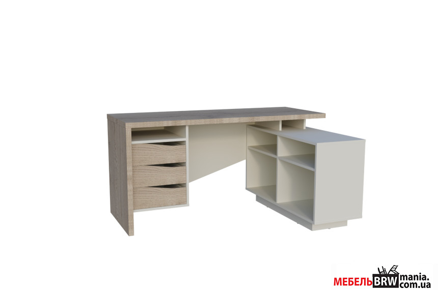 Опис: Стіл комп'ютерний Connect 3 Intarsio кутовий з 3 шухлядами Дуб кремона котта/стоун бейж