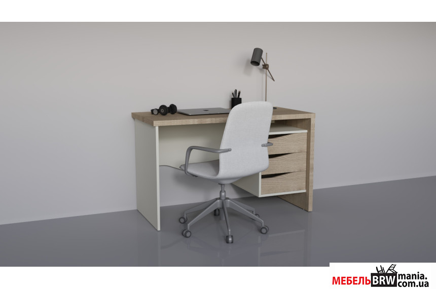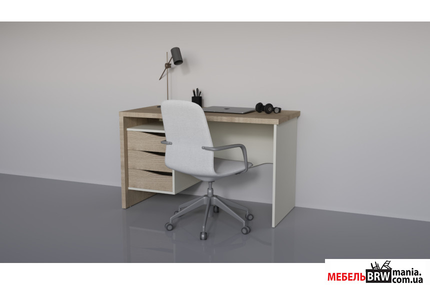 Опис: Стіл комп'ютерний Connect 4 Intarsio з 3 шухлядами Дуб кремона котта/стоун бейж
