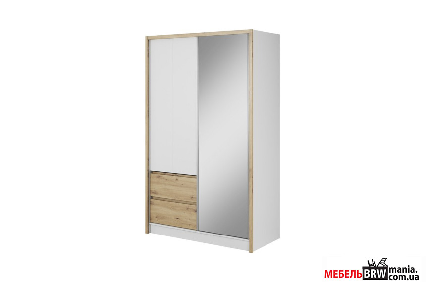 Шафа напівкупе для одягу Сара / Sara 130 Perfect Home 3-дверна з дзеркалом Білий/дуб артизан