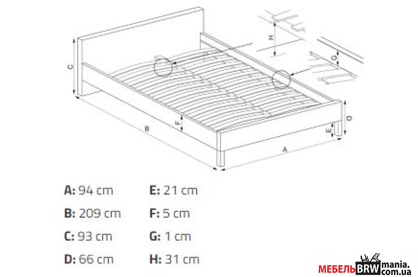 - Висота узголів'я 93 см