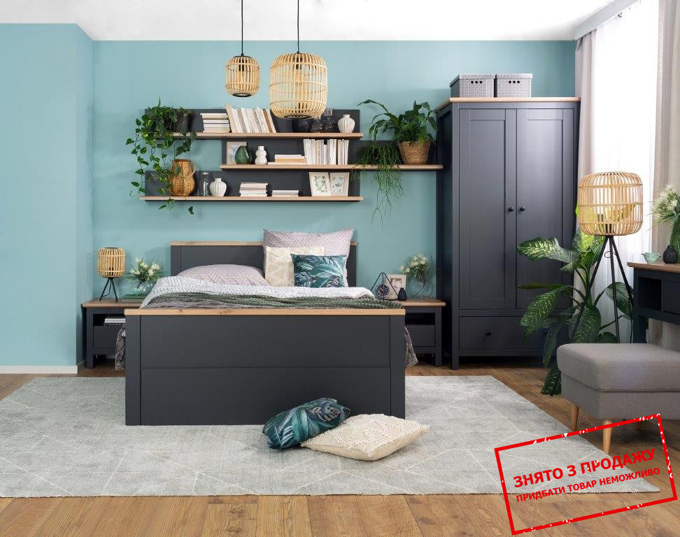 - Модульна спальня Hesen Меблі BRW Польща Графіт/дуб артизан