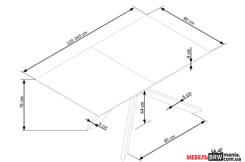 - Відстань між ніжками 85 см