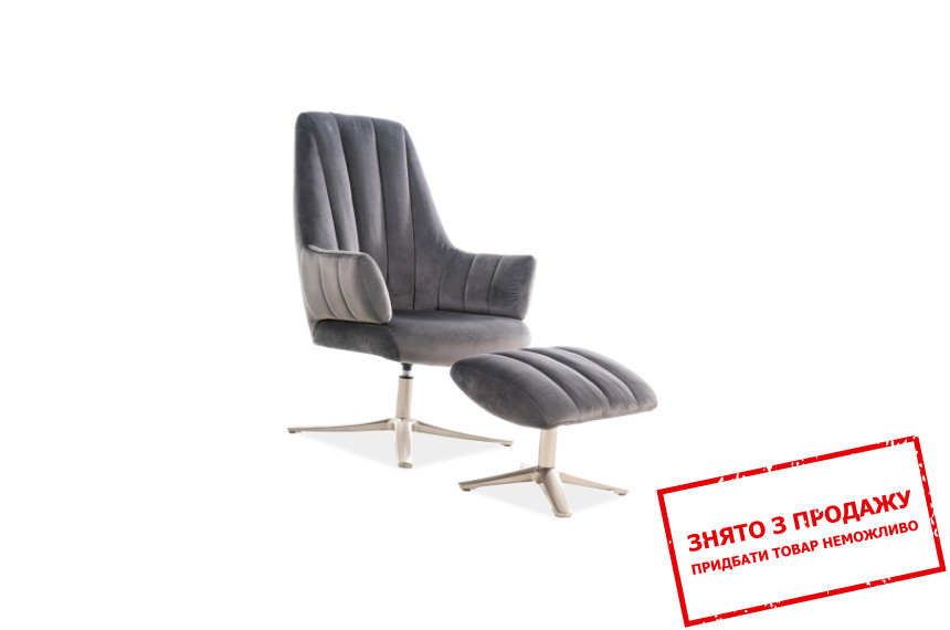 неймовірно красивою палітрою (сірий відтінок). Крісло має металеву основу,